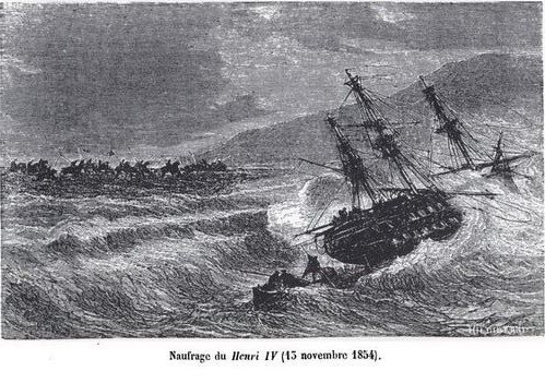 Le 14 novembre 1854, un ouragan s’abat sur la Crimée, la mer Noire et Constantinople. Outre la pluie qui remplit les tranchées, le vent qui arrache les tentes et détruits les hôpitaux, les navires Henri IV et Pluton sont jetés sur les côtes, un navire anglais sombre avec 250 prisonniers russes, plusieurs bateaux se perdent à Balaklava et Kamiesh dont certains transportaient des vivres et vêtements chauds.