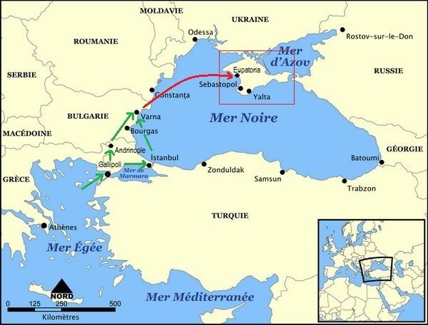 Dans les derniers jours de mars, les troupes françaises atteignent Gallipoli, dans le détroit des Dardanelles, elles sont rejointes par d’autres convois pendant tout le mois d’avril 1854.
