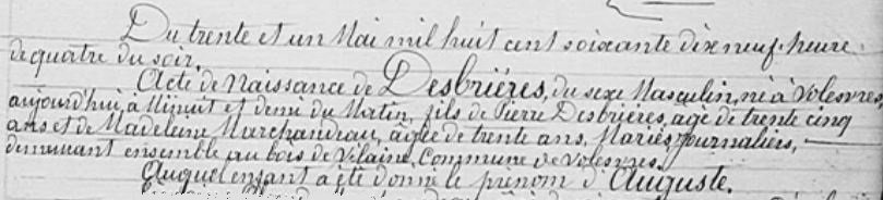 Le premier enfant s’appelle Auguste, il est né le 31 mai à 00H45.