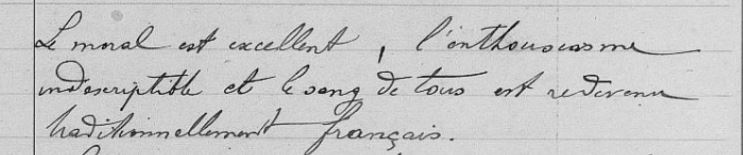 Selon le journal « le moral est excellent, l’enthousiasme indescriptible et le sang de tous est redevenu traditionnellement français.