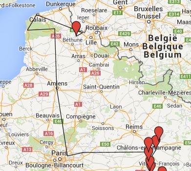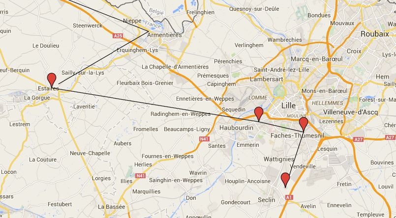 Le régiment est brusquement relevé le 1 er octobre 1914 au matin et reçoit l’ordre de partir pour Chalons sur Marne où il embarque en train. Le trajet est long : de la Champagne, les hommes vont rejoindre Estaires (59) en passant par Meaux, Amiens, Boulogne, Calais et Armentières.