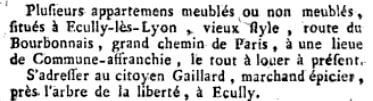 Sources : 1L209-AD69, 3L78-AD69, 17L7-AD69, 18L10-AD69, 21L16-AD69 Journal de Lyon, ou Moniteur du département de Rhône-et-Loire, Journal républicain des deux départements de Rhône et Loire, Archives historiques et statistiques du département du Rhône numérisés par google, Bulletin historique du diocèse de Lyon numérisé par Gallica, Fonds Coste Ms Coste 1230 BM Lyon.