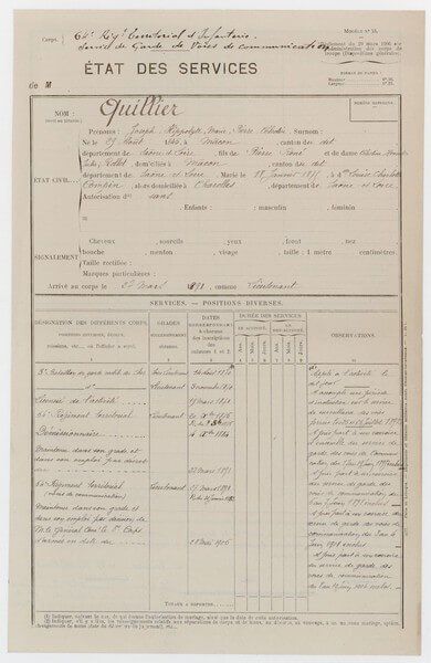 Joseph Quillier est nommé lieutenant le 3 novembre 1870 et licencié de son activité le 19 mars 1871.