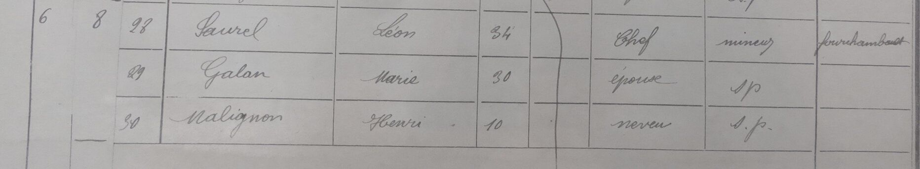 Le couple n’a pas d’enfant mais depuis 3 ans environ, il a à sa charge les enfants Malignon, fils de la sœur de Mr Saurel qui a été abandonnée par son mari. Depuis peu, cette femme a repris son fils cadet et Henri, l’ainé, reste chez les Saurel. Le troisième semble être décédé.