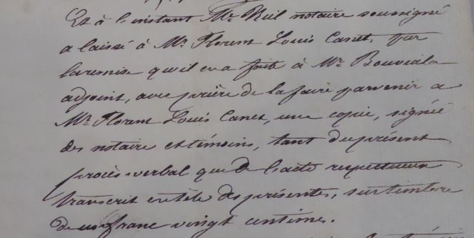 La notification n’a lieu que le 5 février 1881 à 14 H: le notaire, maitre Niel, accompagné de 2 gendarmes à cheval se rend chez Mr Canet père et ne trouve personne rattaché à son service. Les portes sont closes et aucune réponse n’est faite.