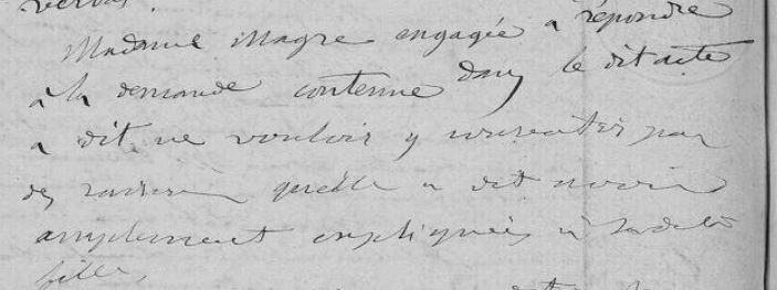 Le notaire Maitre Lunet se rend le jour même à 14H au magasin des parents Magre avec deux témoins et notifie le contenu de l’acte à Mme Magre. Cette dernière répond au notaire « ne vouloir y consentir par de raisons qu’elle a dit avoir amplement expliqués à sa fille. »