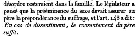 Mais en cas de désaccord entre les parents (comme dans l’exemple ci-dessus), c’est le consentement qui père qui prévaut selon l’article 148.