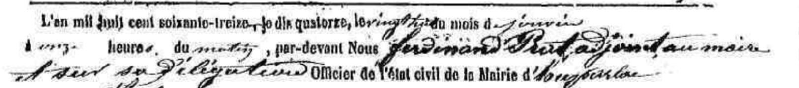 Mais en cette fin d’année 1873, il y a une erreur d’impression sur les feuillets destinés à recueillir les mariages : la date est indiquée « L’an mil huit cent soixante-treize je dis quatorze ».