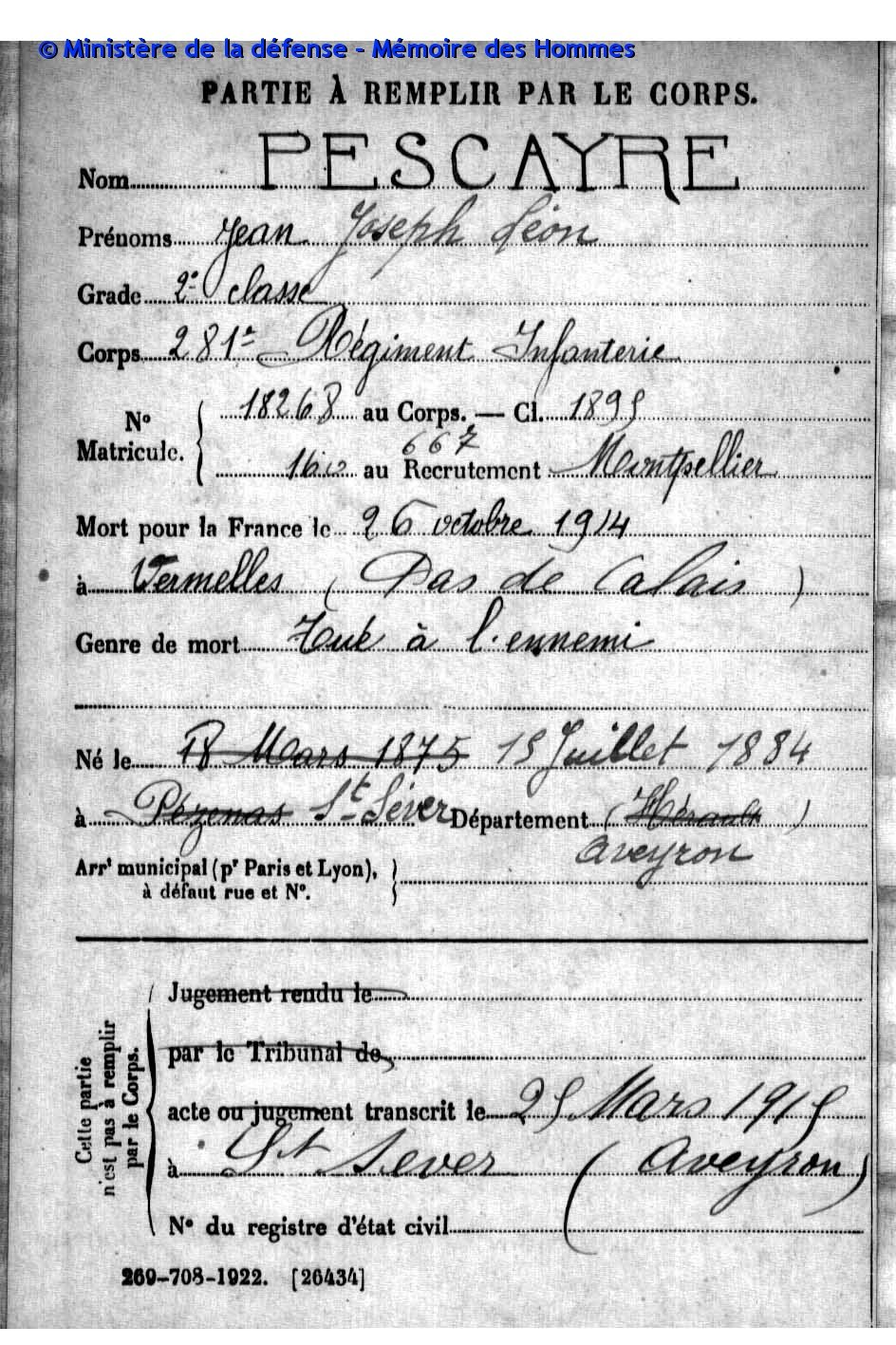 Sources: 4E127/14-AD12, 4E257/7-AD12, 4E257/8-AD12, 4E60/8-AD12, 6M795-AD34, 1R914-AD12, 1R1116-AD12, 1R1150-AD34, 10U1/30-AD12, 30R19-AD12, sga mémoire des hommes
