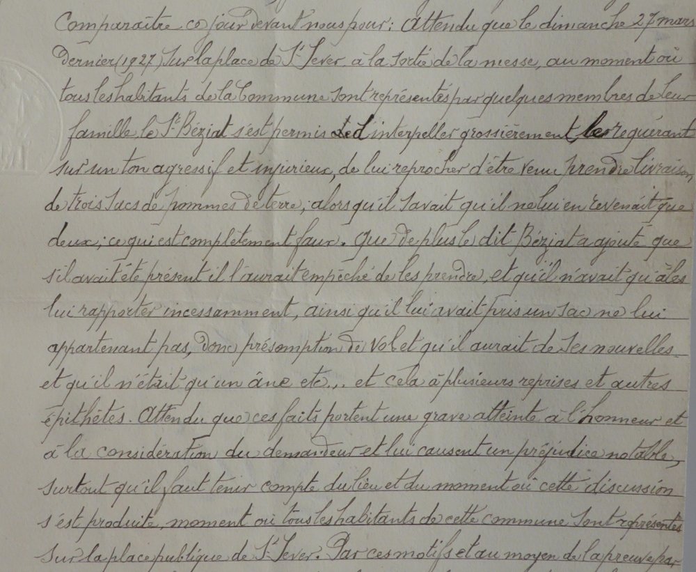 Le 13 mai 1928, Jean Béziat attaque Louis Guittard au loin du village de St Séver, le menace de mort et sans l’intervention des dames Béziat et Pellegry, il n’aurait pas s’en tirer indemne.