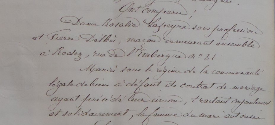 - de son mariage avec Pierre Delbès, maçon à Rodez de 21 ans son cadet.