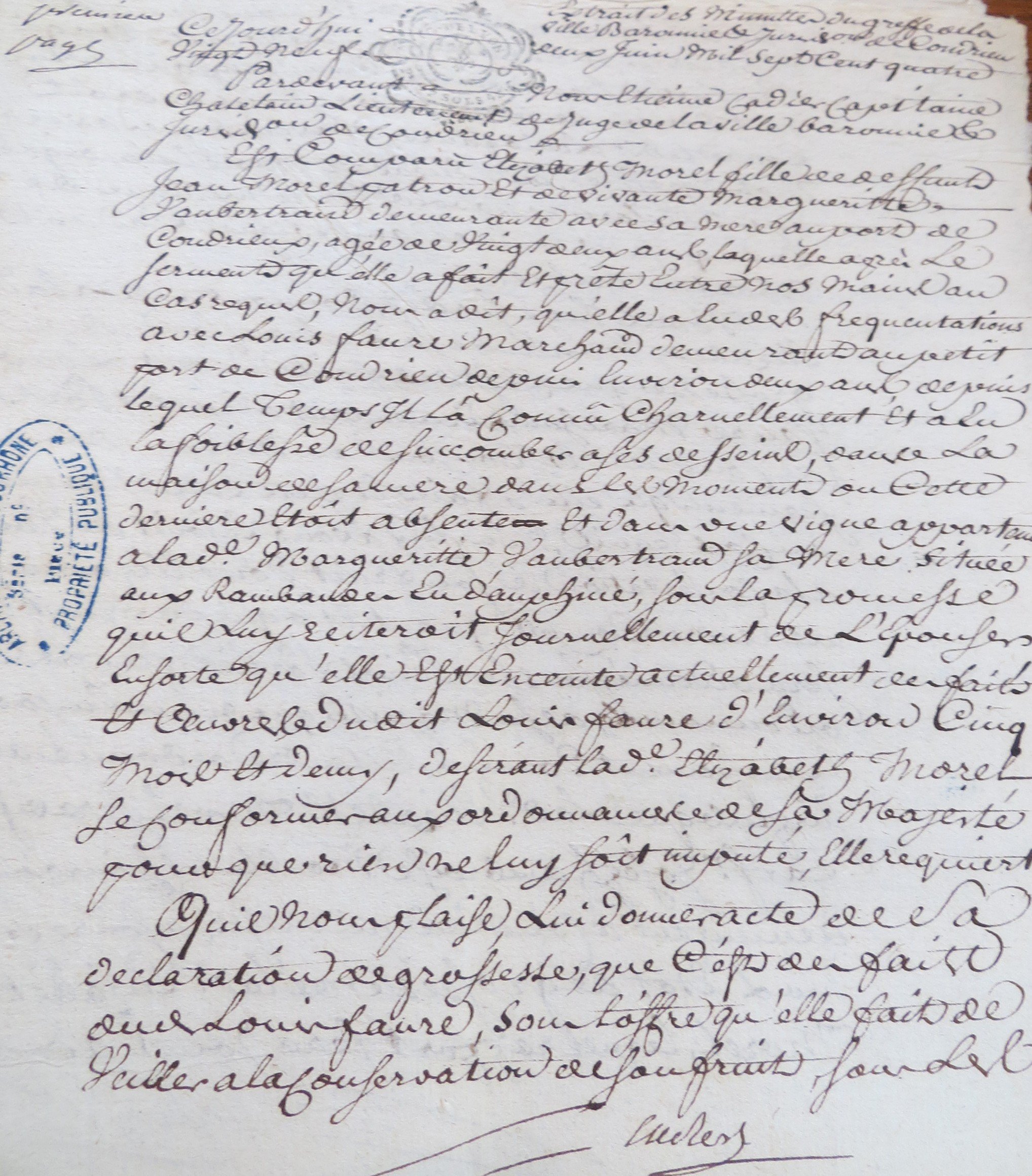 La déclaration de grossesse est souvent dans la série B et parfois surprenante de détails sur la conception de l’enfant.