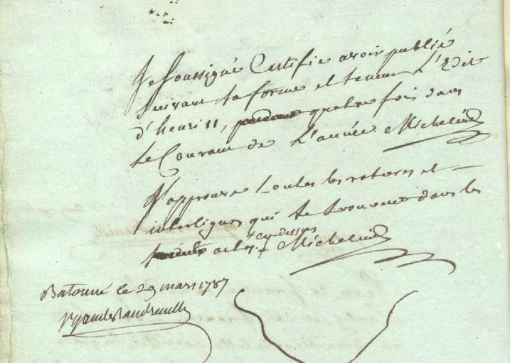 La publication de l’édit d’Henri II perdure. Vous la croiserez peut être dans les registres paroissiaux comme cet exemple en 1787.