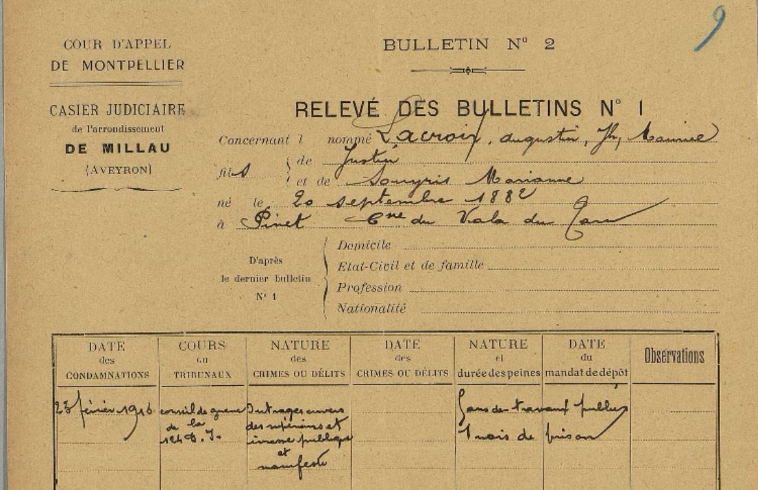 Augustin Lacroix est né le 20 septembre 1882 au hameau de Pinet sur la commune de Viala du Tarn. Il est le fils ainé des 7 enfants de Justin et de Marianne Souyris.