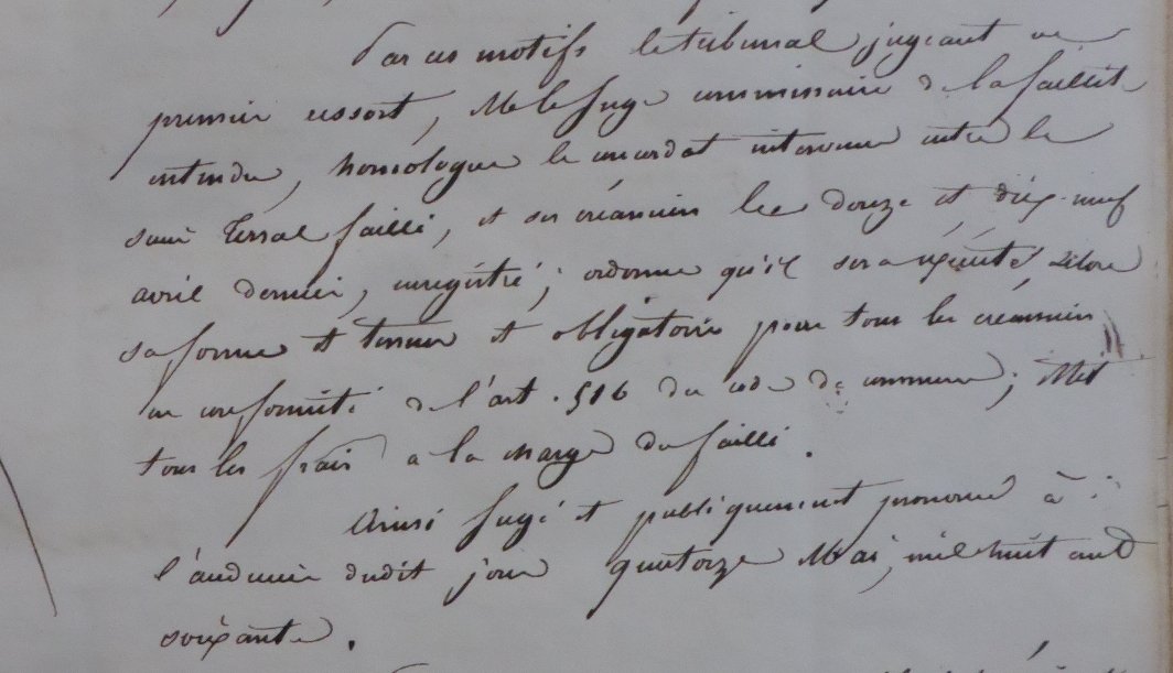 Le dossier de faillite est en lacune dans les archives, mais quelques jugements permettent d’obtenir des informations sur la suite de l’affaire.