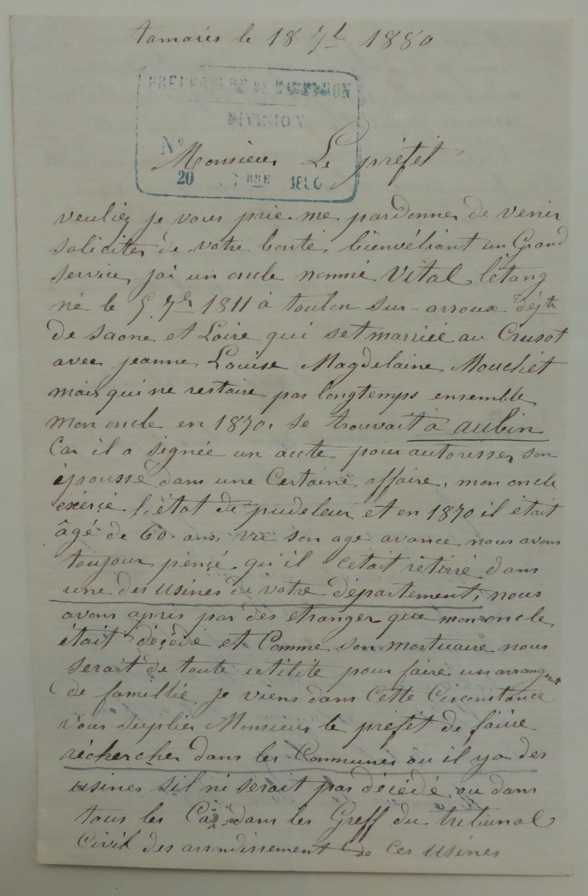 La famille a « appris par des étrangers » que Victor Létang était mort, d’où la demande du neveu au préfet de l’Aveyron en 1880 pour faire des recherches. Ce dernier répondra après quelques jours, qu’aucune trace de cet homme n’a été retrouvée dans les établissement industriels du département (Victor était pudleur).
