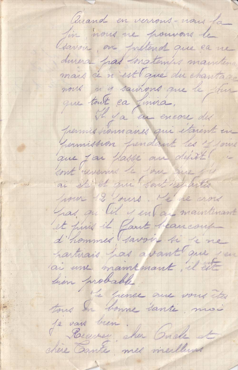 On suppose que Joseph n’écrit pas que ses dernières volontés mais qu’il se veut rassurant sur son état de santé. Peut-être demande-t-il des nouvelles de sa famille et notamment de ses 7 frères et sœurs ? Mais il ne sait probablement pas que son frère ainé est déjà mort, disparu à Dieuze le 20 aout 1914.