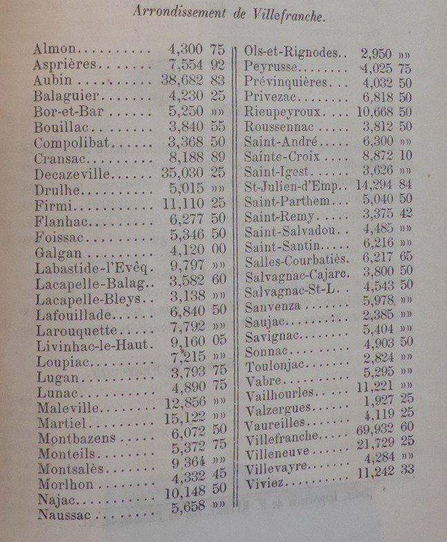 - Valzergues, 507 habitants, 1 927,25 francs à payer.