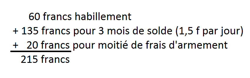 - 60 francs par homme pour l’habillement et l’équipement ;