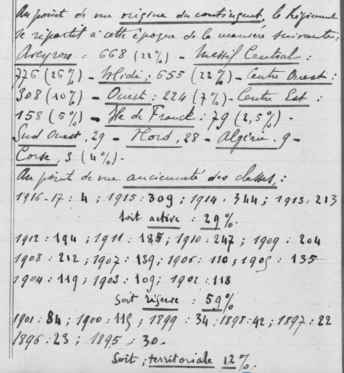 François est alors affecté au 122 ème RI qui fait des statistiques sur les origines géographiques et l’ancienneté de ses soldats.