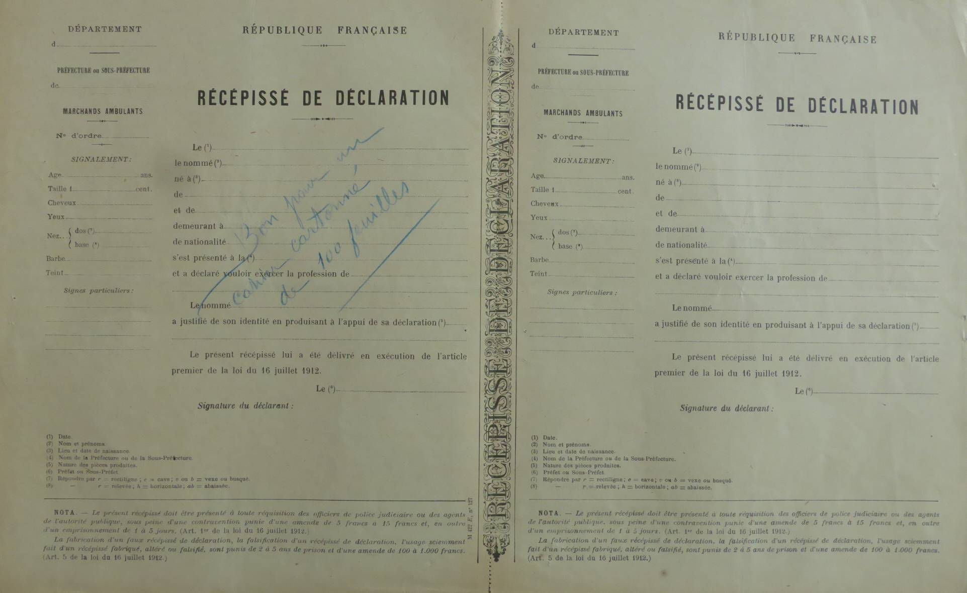La loi du 16 juillet 1912 règlemente les professions ambulantes et la circulation des nomades. Quels documents sont conservés aux archives et qu’est ce qu’on y trouve?