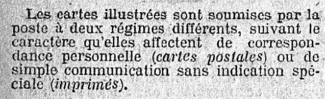 Quelques mots seulement! Cela nous renvoie à l’arrêté ministériel du 18 novembre 1903 (modifié en 1904) qui prévoyait un tarif d’affranchissement en fonction de l’usage de la carte illustrée.