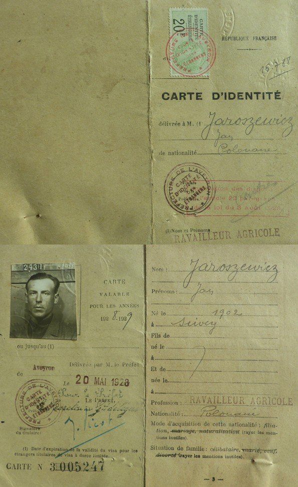 1917 : les travailleurs étrangers doivent avoir une carte d’identité qui leur tient lieu de sauf conduit. Elle est gratuite, chamoise (pour l’agriculture) ou verte (pour l’industrie) et délivrée par le commissaire de police du poste frontière ou le bureau des travailleurs étrangers.