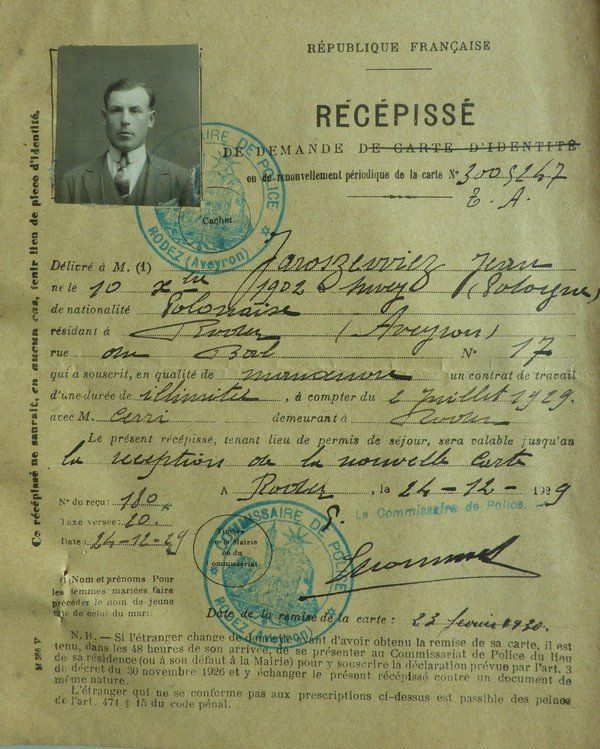 1922 : pour désengorger les commissariats de police des postes frontières, il n’est émis qu’un sauf conduit aux étrangers. La carte d’identité est envoyée à la préfecture de destination où l’ouvrier doit la récupérer dans les 8 jours après son arrivée. La carte est devenue payante…