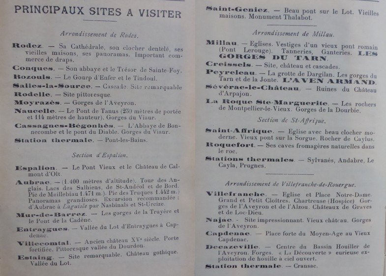 C’est l’annuaire Colomb, publié Rue Combarel à Rodez, qui nous donne la liste des principaux sites à visiter par arrondissement.