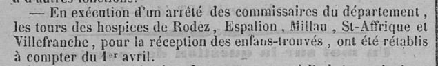 L’Aveyron ne peut pas continuer de payer pour tout le monde. Le préfet décide alors de supprimer le tour de l’hospice de Villefranche à partir du 1 er juillet 1830.