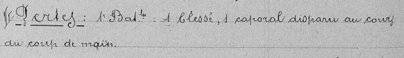 « Un caporal disparu au cours du coup de main » manque à l’appel, c’est Joseph Sotty. Il avait 23 ans.