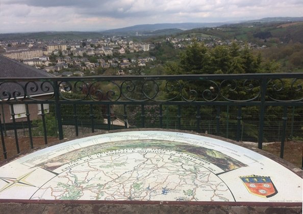 La table d’orientation arrive mi décembre 1911 à Rodez. Elle est en lave émaillée d’Auvergne. Réalisée par l’Usine Saint Martin près de Riom, elle a la forme d’un demi-cercle d’un mètre de diamètre sur 61 cm de large. Elle est montée sur un pied de pierre de taille.