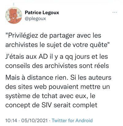Suite à la publication cet article, une proposition a été émise par Mr Legoux à destination des archivistes via leur site Web. Puissent-t-ils réfléchir à cette suggestion....