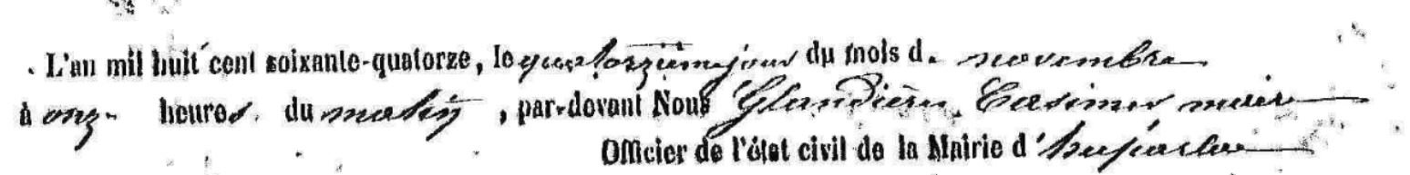Mais en cette fin d’année 1873, il y a une erreur d’impression sur les feuillets destinés à recueillir les mariages : la date est indiquée « L’an mil huit cent soixante-treize je dis quatorze ».