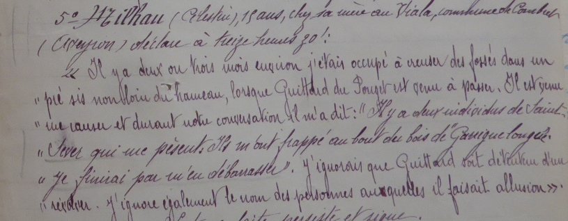 Louis Guittard a 30 ans. Il est né en 1898 dans cette commune au Pouget. C’est lui l’assassin. De part son âge et sa surdité, il ne participe pas à la Grande guerre. Il est célibataire et vit avec son père.