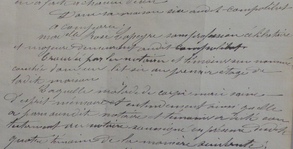 Marie Rose Lapeyre décédée célibataire à Compolibat n’aura probablement jamais su que son identité a été usurpée dans le jugement de son homonyme prostituée et les généalogistes retiendront qu’il faut toujours essayer de croiser les sources d’informations .