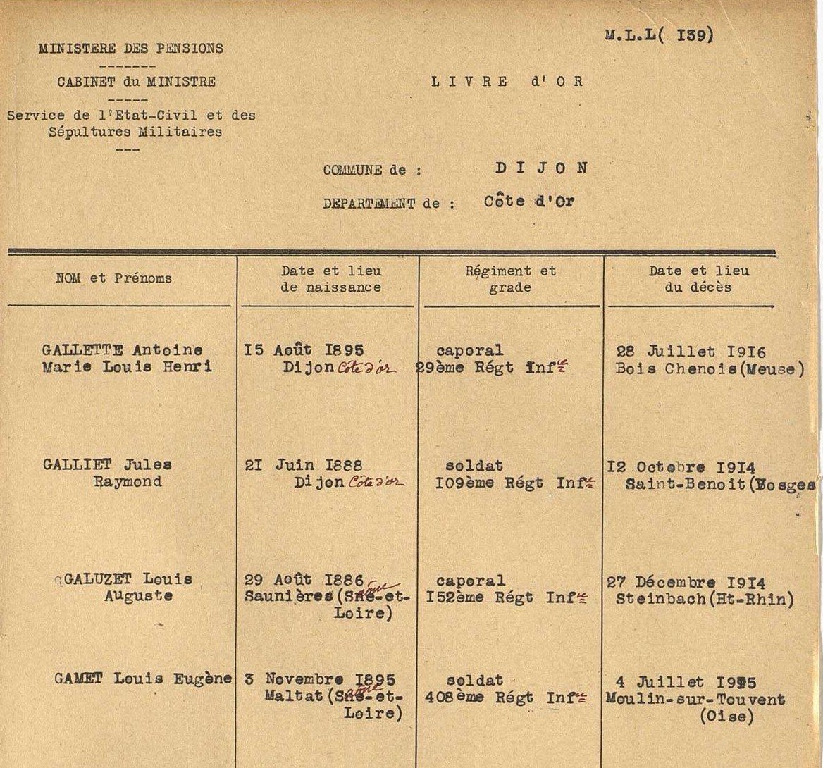 Louis Eugène Gamet est né le 3 novembre 1895 à Maltat (71) de Louis et de Marie Louis Gagnot.