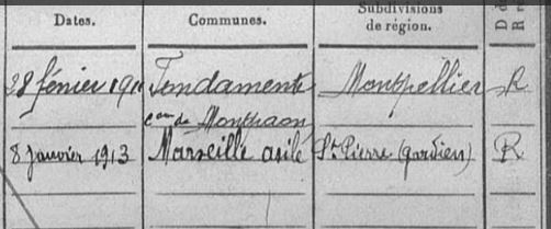 Il déménage à Montpaon et se marie en mai 1911 à avec Eulalie Rosalie Boudes. Cantonnier au chemin de fer du midi, sa fiche matricule l’indique gardien de l’asile St Pierre à Marseille en 1913.