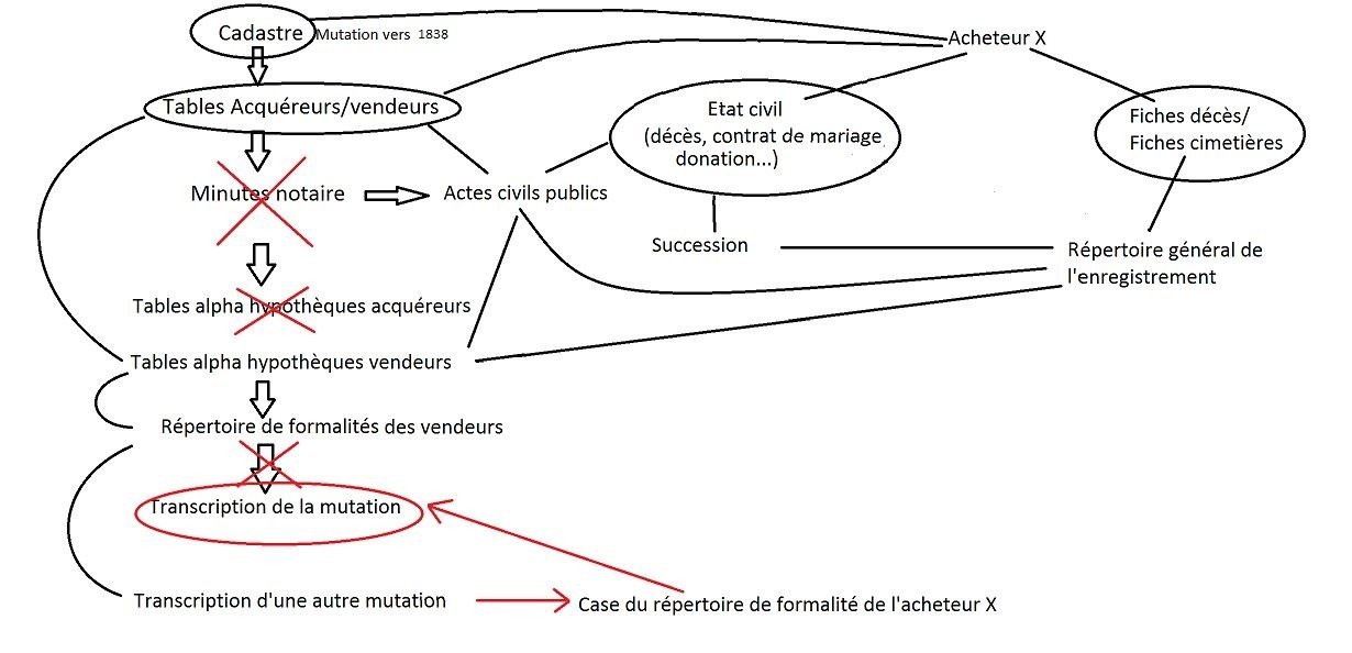 La troisième idée est d’élargir la recherche à d’autres communes. En effet, il ne faut pas oublier que les hypothèques régissent l’équivalent d’un arrondissement alors que les autres documents évoqués sont plus locaux. Rien de plus pour notre acheteur…