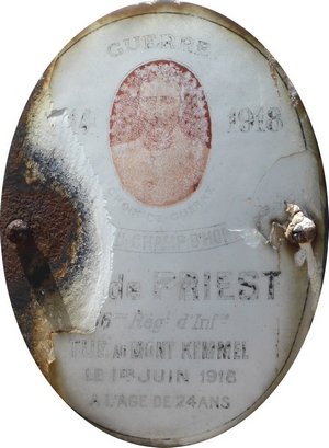 Le 36ème RI part au mois de mai 1918 vers la Belgique dans la région du Mont Kemmel . Claude Priet est évacué comme blessé le 22 mai 1918 et décède des suites d’une intoxication par gaz le 1 er ou le 2 juin 1918 à l’hôpital complémentaire N°57 de Redon (35). Sa fiche matricule donne les deux dates, l’une à l’encre, l’autre au crayon de papier. Il avait 24 ans.
