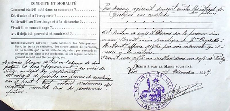 - de plus il est l’auteur de coups et blessures sur un ancien domestique et aurait giflé un vieillard dans un café de Rodez!