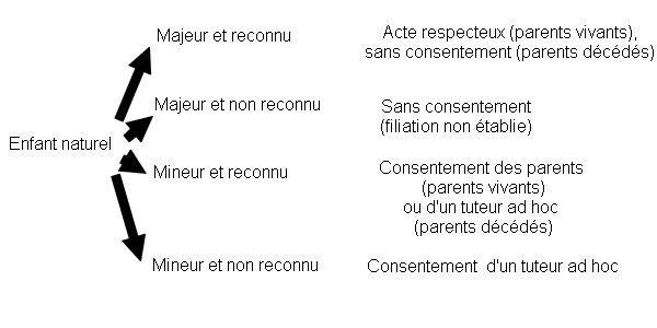 De plus, une étape supplémentaire intervient dans le processus : la reconnaissance. En effet, selon le code civil « La filiation d’un enfant naturel ne pouvait résulter que d’un acte de volonté, soit un acte de reconnaissance devant l’officier d’état civil ou un notaire soit dans le cadre d’une prise en charge sociale. »