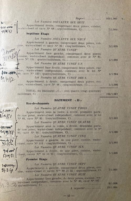 Enfin, pour certains immeubles construits pour créer la copropriété, vous pourrez avoir de belles surprises dans les hypothèques avec la transcription du dépôt du devis (avec le nom de l’architecte et le détail des matériaux) et des plans.