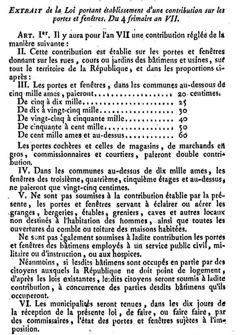 Extrait de la loi sur les portes et fenêtres paru dans le Manuel des agents et adjoints municipaux.